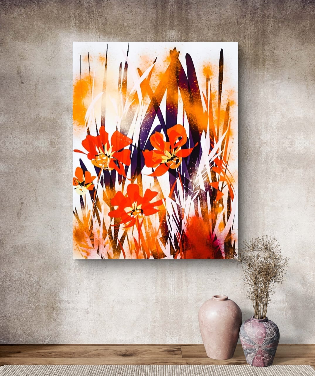 This artwork is perfect for living rooms, bedrooms, offices, or studios. It pairs well with both modern and traditional décor. The abstract orange poppies print also makes a thoughtful gift for art lovers and collectors. Copyright protected, it is a lasting piece of wall décor that brings beauty and charm into your home.