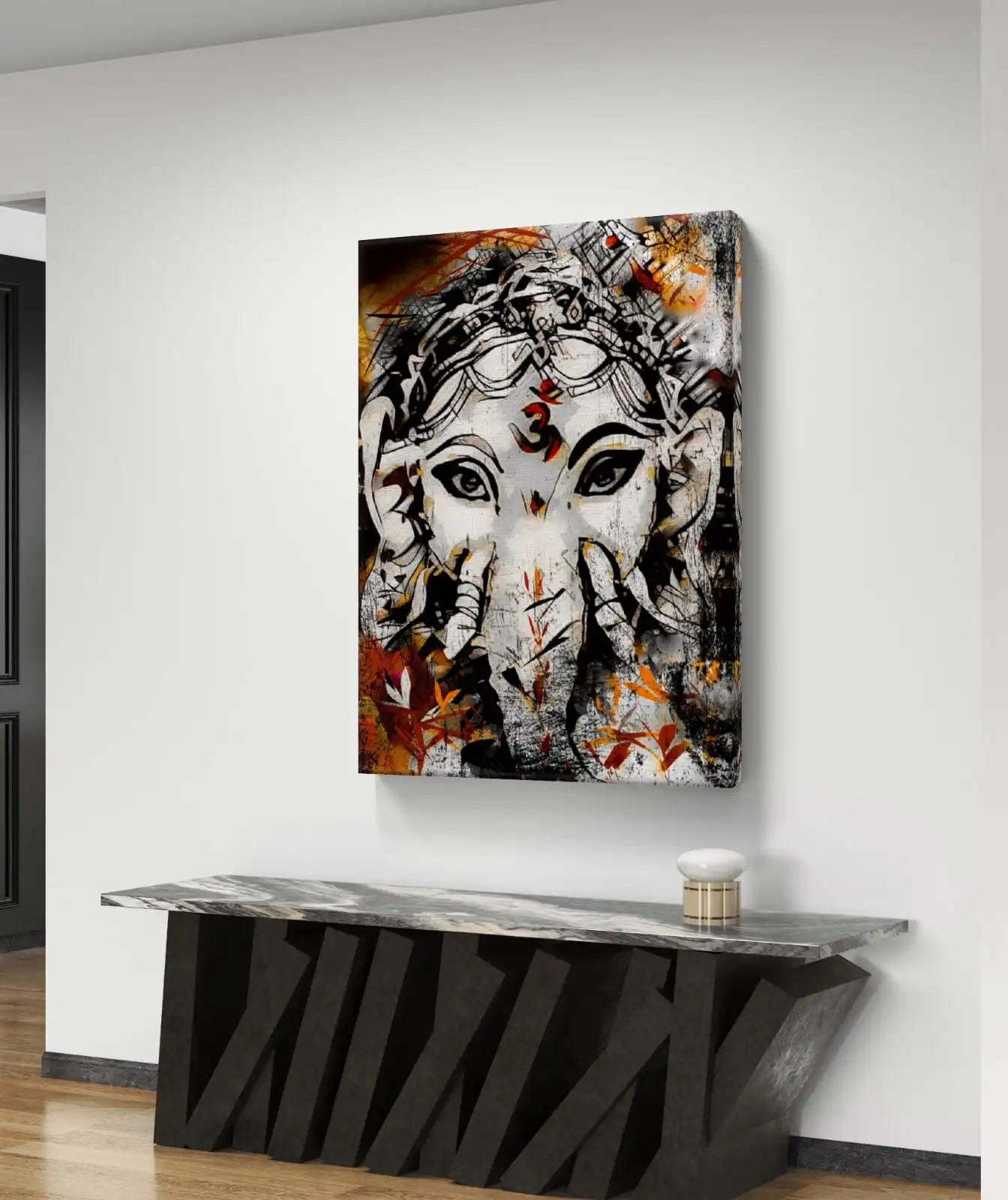 The Celestial Ganesh Vision Canvas is a great choice for homes and offices. It adds a modern artistic feel without being too bold. This print suits living rooms, studios, workspaces, or gifting needs.