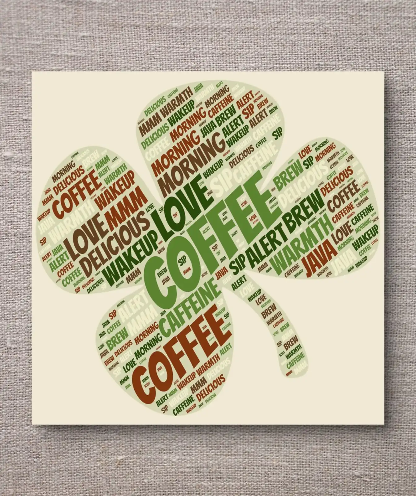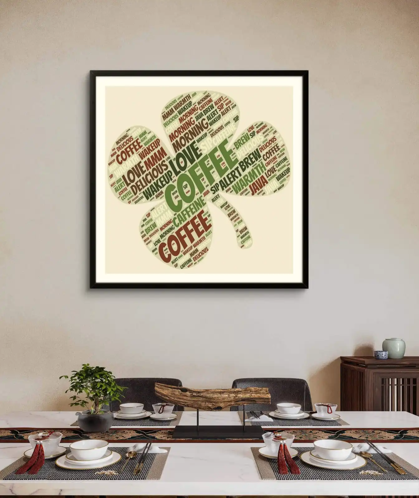 Coffee in Bloom Typography is a coffee artwork inspired by nature and daily coffee moments. Coffee words form soft petals in a blooming flower shape. The design feels calm, warm, and balanced. It suits cafes, kitchens, studios, and relaxed living spaces.