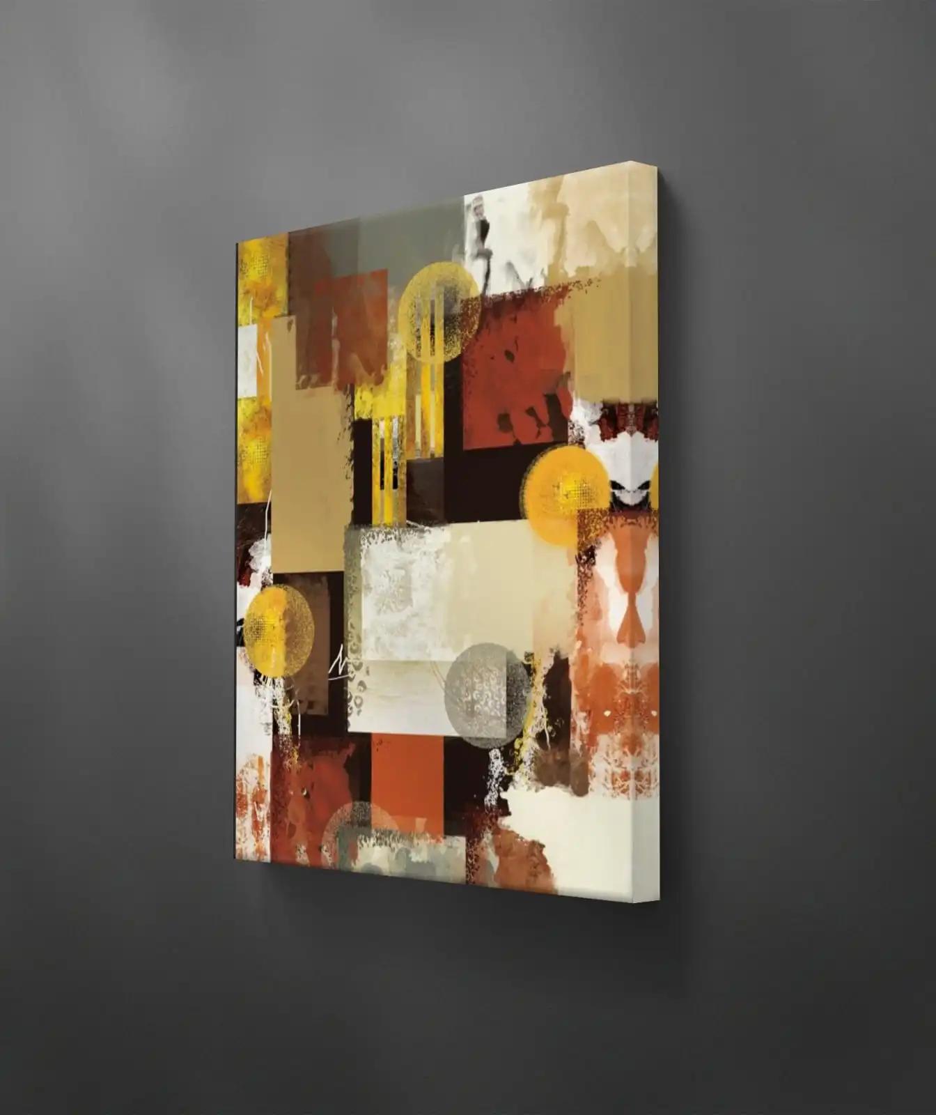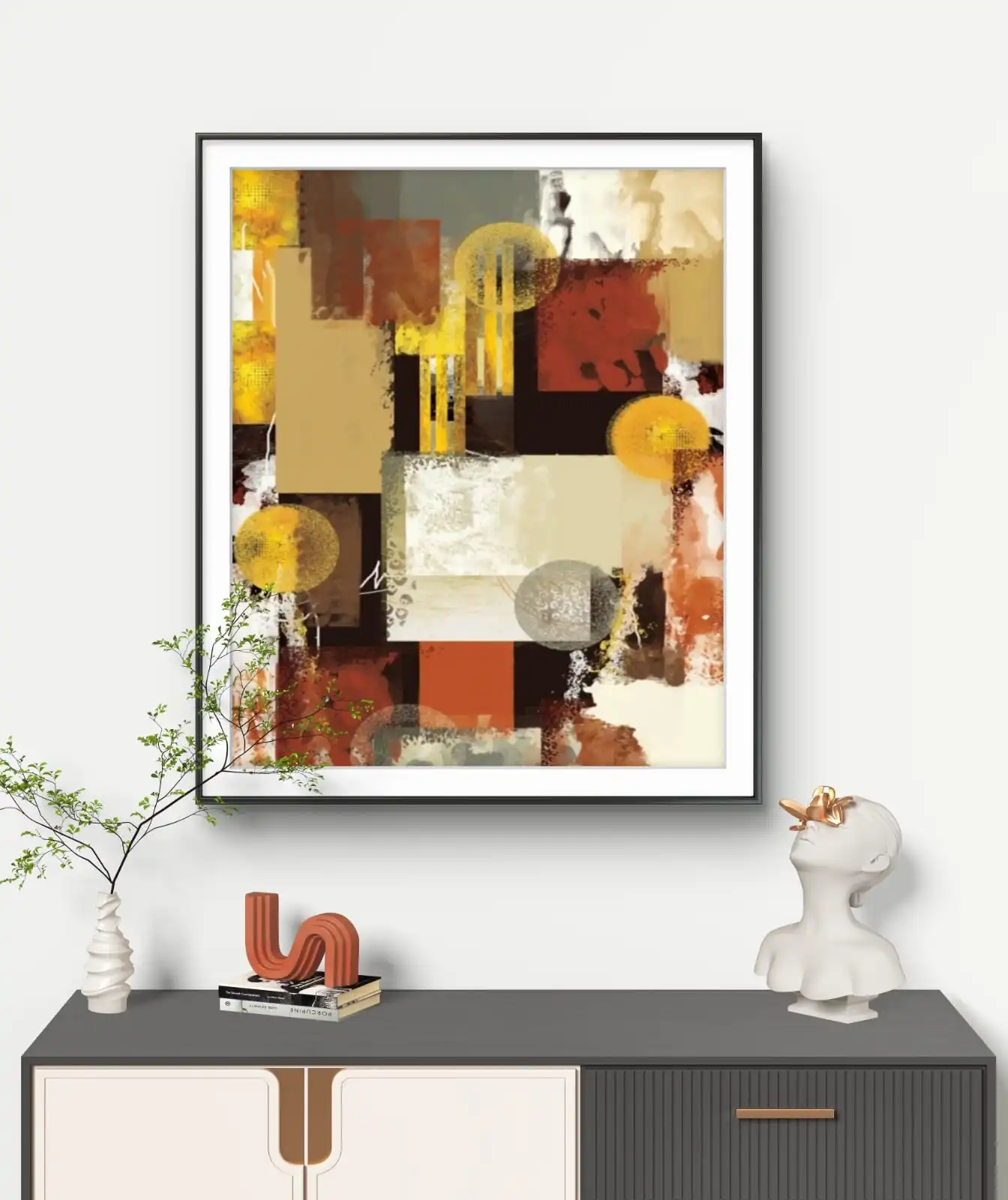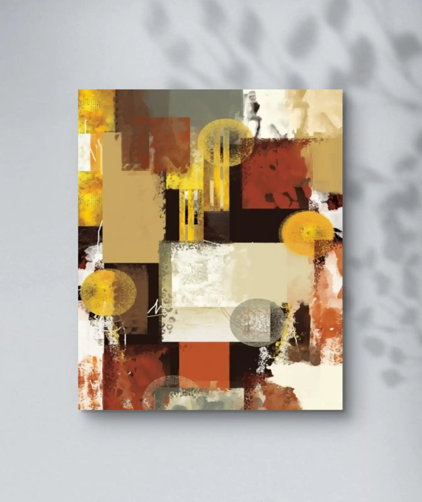 Golden Glow Abstract Painting adds a warm and peaceful charm to any room. The mix of golden, beige, and brown shades brings light, comfort, and balance to your walls. Its simple shapes and soft tones make it easy to match with any home or office style.