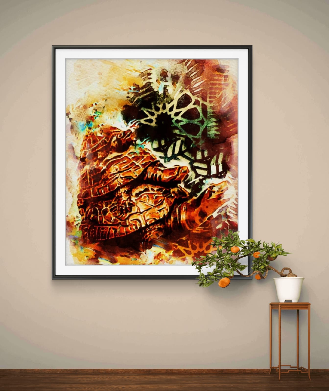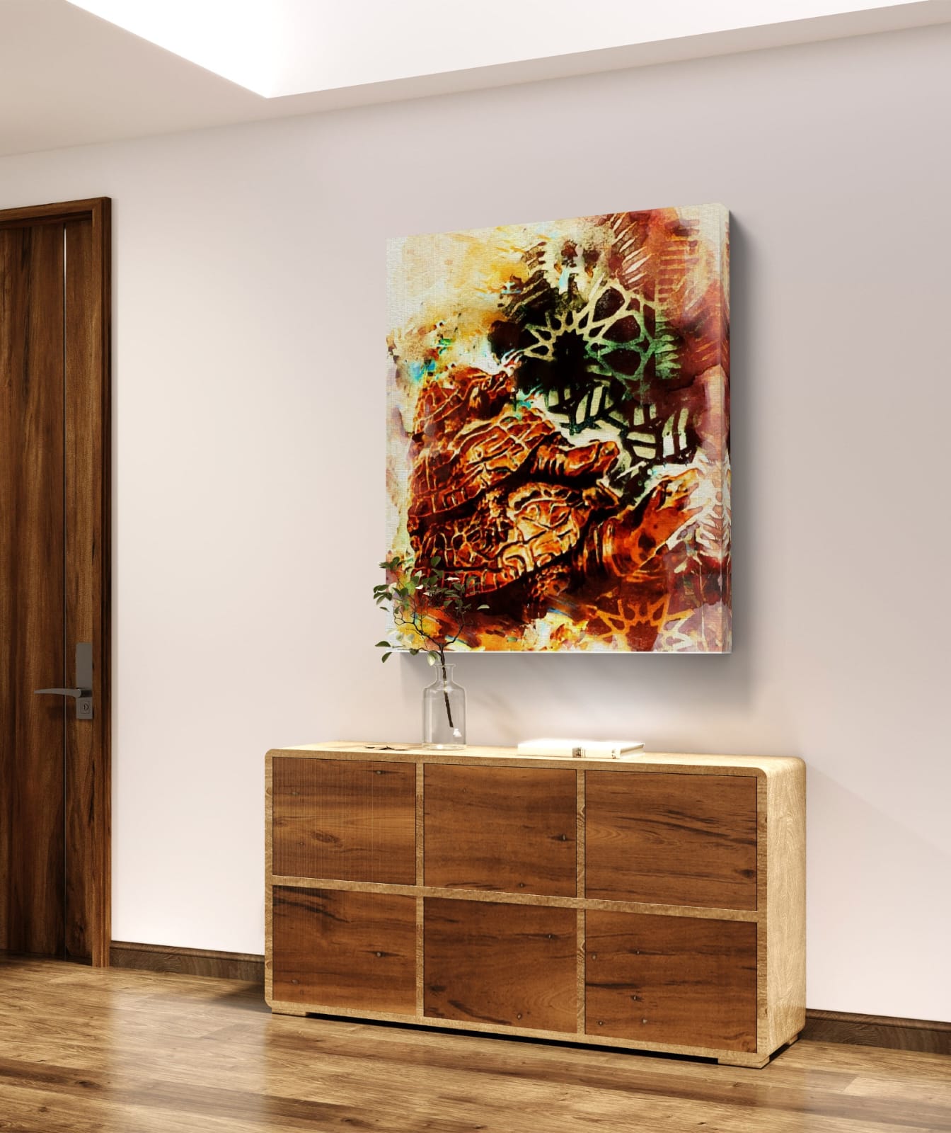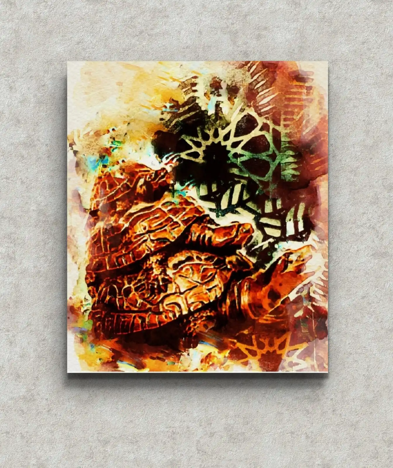 Harmony of Three Turtles is a handmade painting that celebrates peace, balance, and nature. The artist signed this fine art print on premium cotton canvas to ensure authenticity. The artwork shows three turtles moving in harmony. They symbolize strength, long life, and calm energy. Vivid colors and fine details make it a captivating focal point.