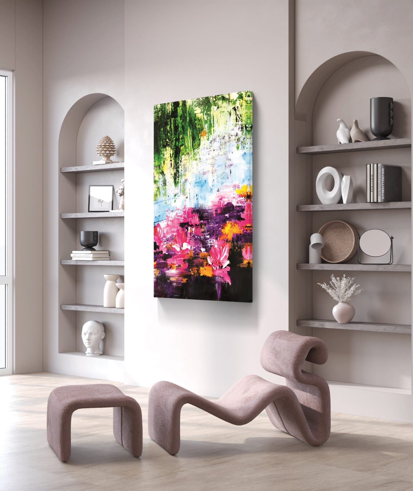 Bring floral beauty to your walls with the Lilies Blossom Art Prints. Each painting is handmade in acrylic on cotton canvas and signed by artist Sabiha Hasan Sumbul. The soft colors and graceful strokes capture the charm of blooming lilies.