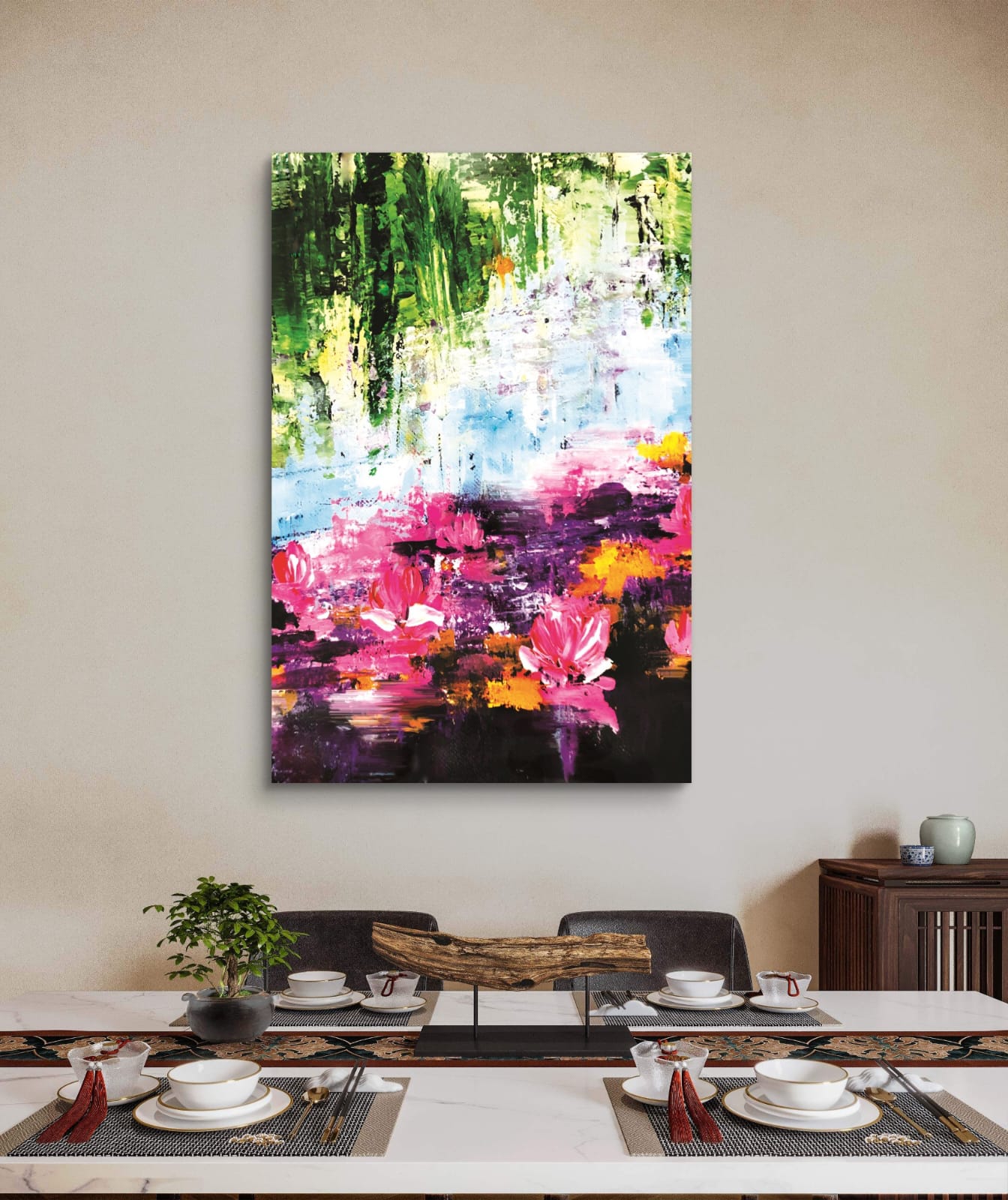 This fine art print set is available in three styles: classical frame, gallery wrap, or unframed. The Lilies Blossom Art Prints fit well in both modern and traditional interiors. Place them in your living room, bedroom, or office for an elegant and calming effect.