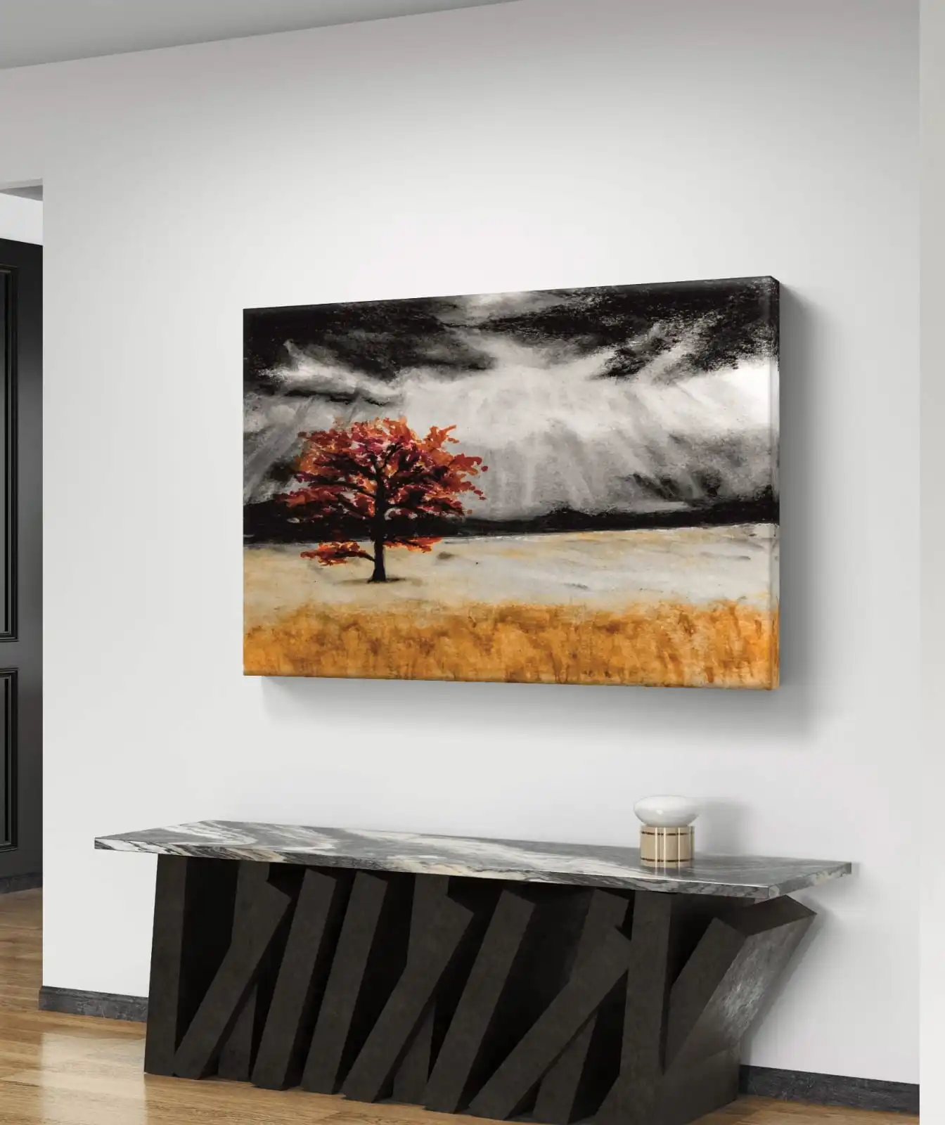 Lone Tree in Motion celebrates the calm power of nature through bold acrylic strokes and soft earthy shades. This painting shows a single tree standing steady in motion, symbolizing peace, balance, and strength. Printed on fine cotton canvas, the art print keeps the rich texture of the original painting. Each piece is hand-signed by the artist and includes a certificate of authenticity. You can choose from classical frame, gallery wrap, or unframed options to match your décor. Lone Tree in Motion brings warmth and serenity to any living room, study, or workspace. It is also a meaningful gift for art lovers who appreciate calm, timeless beauty.