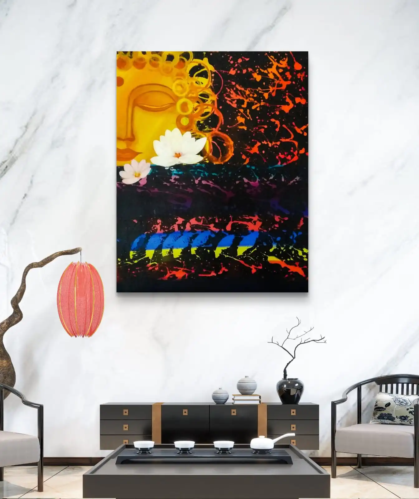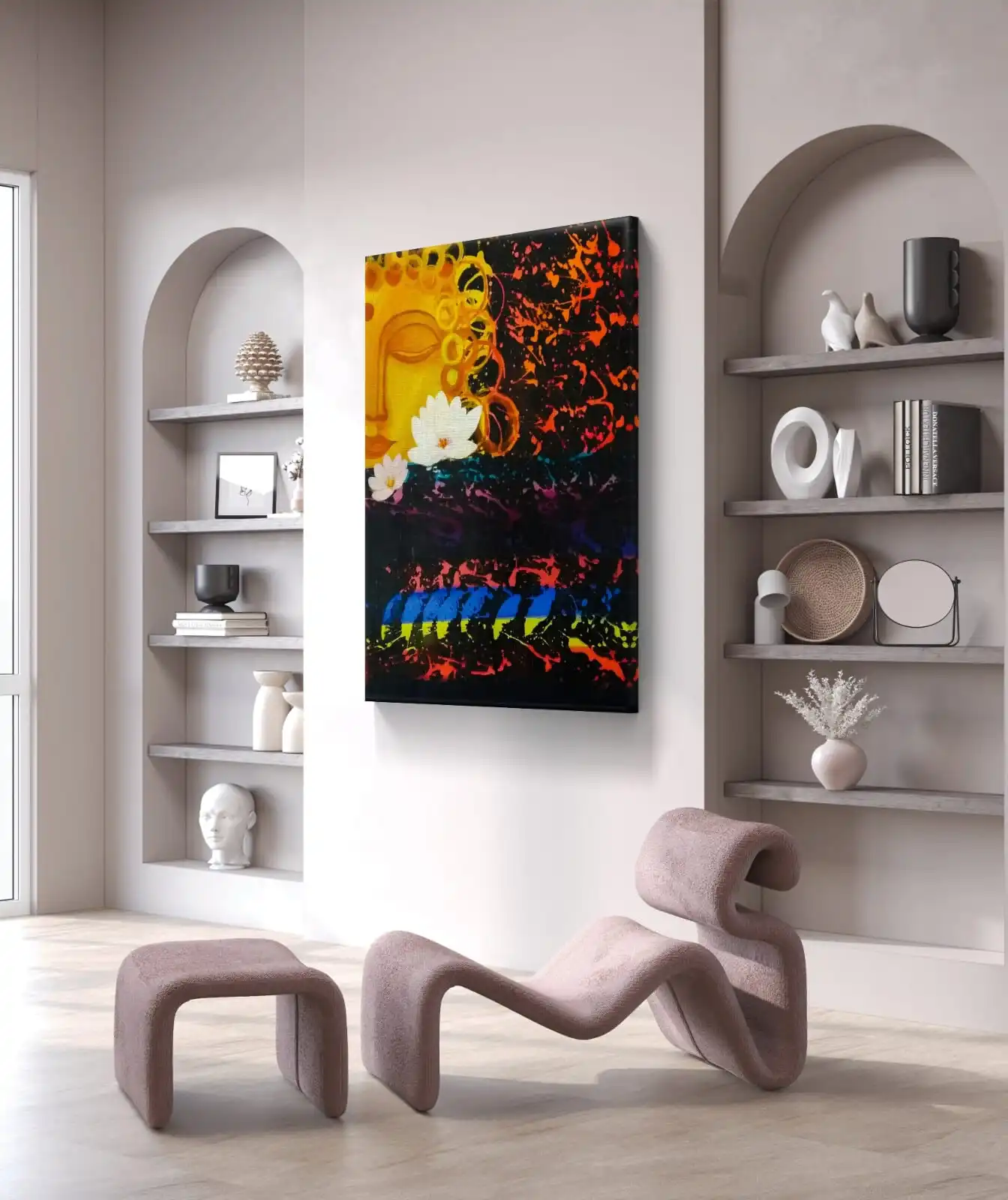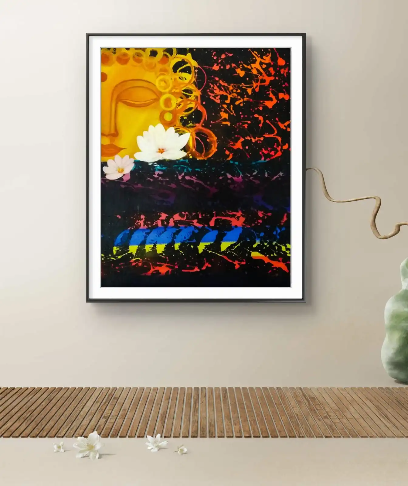 The Lotus of Enlightenment painting is a devotional art piece that shows peace, purity, and mindfulness. Inspired by the sacred lotus and the calm spirit of Buddha, it fills your space with light and harmony. Its soft colors and smooth brushwork bring a sense of calm to any room.