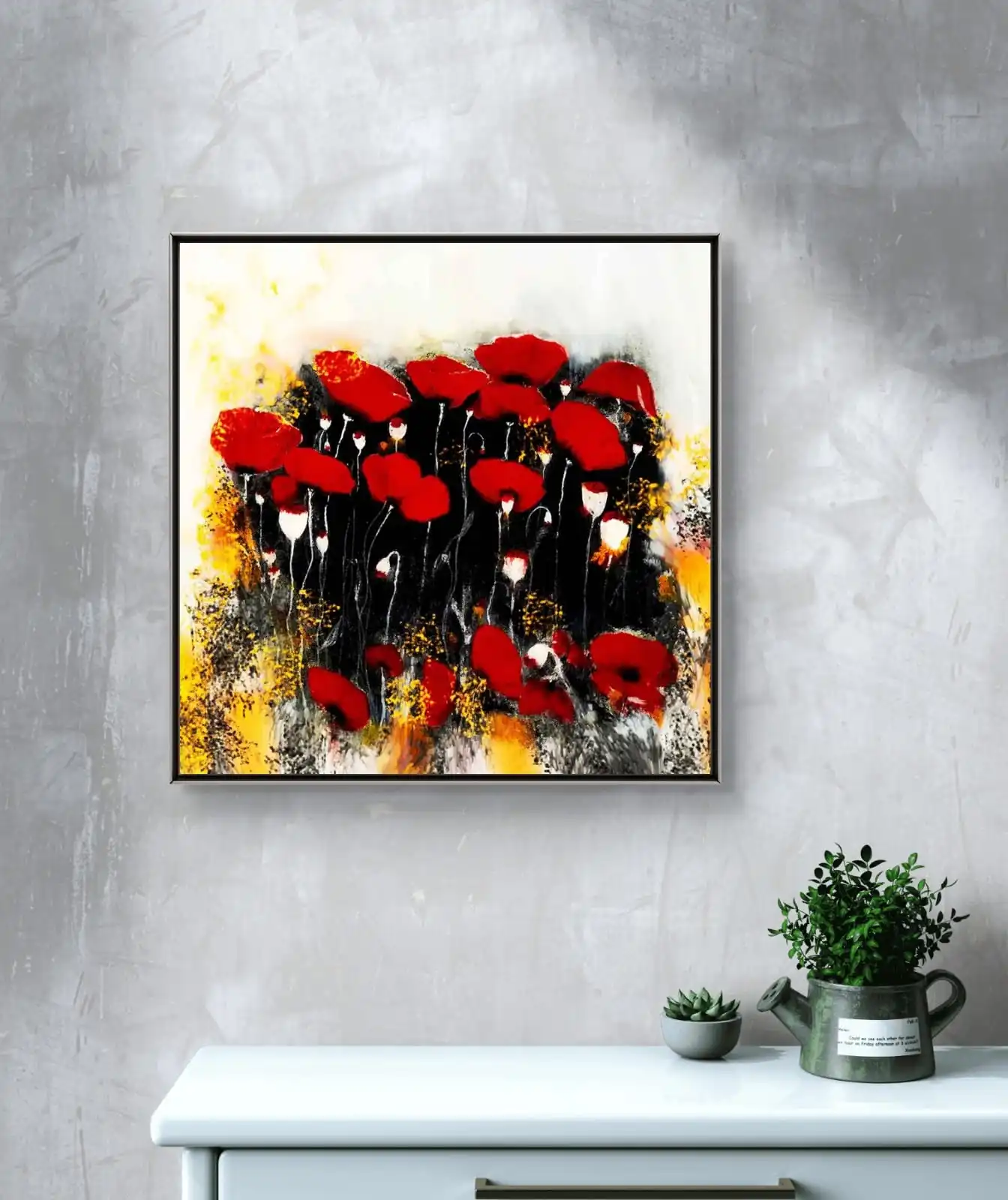 This Red Poppies in Bloom painting is a handmade acrylic artwork on canvas. Smooth brushstrokes add texture and depth. The painting reflects beauty, strength, and calm emotion through blooming flowers.