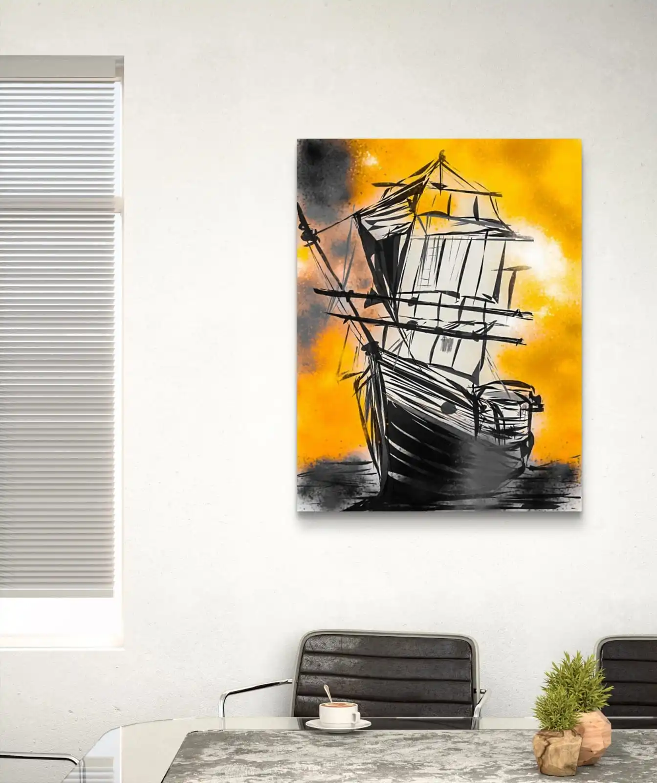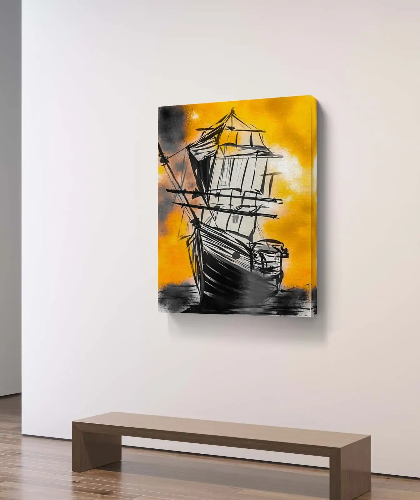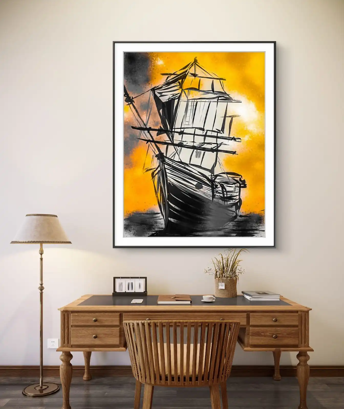 Add elegance and positive energy to your walls with Sketch of Fortune Art. This artwork shows a hand-sketched ship on a bright yellow background. In vastu, the ship represents progress, stability, and good fortune. Its simple lines and warm colors create a calm and uplifting effect in any room.