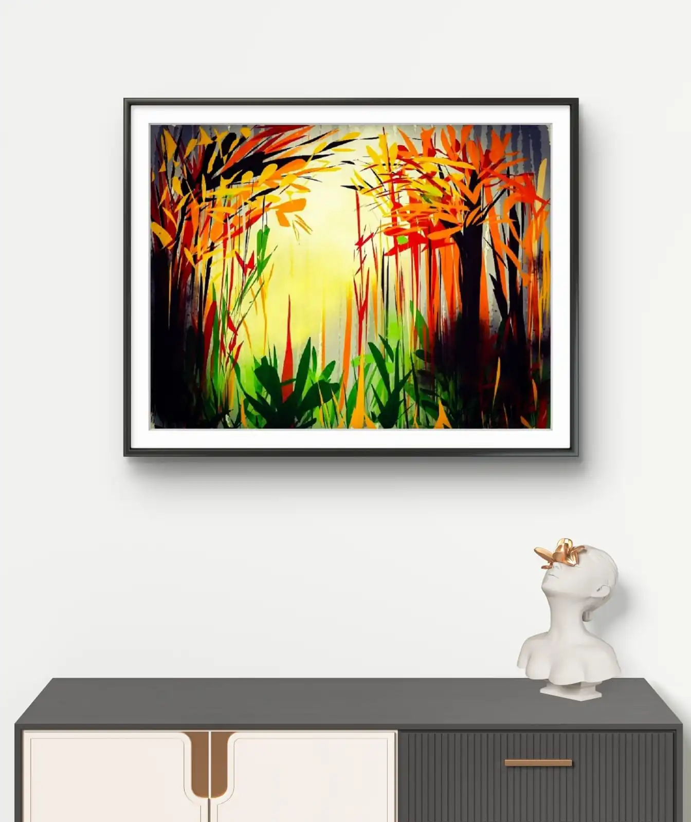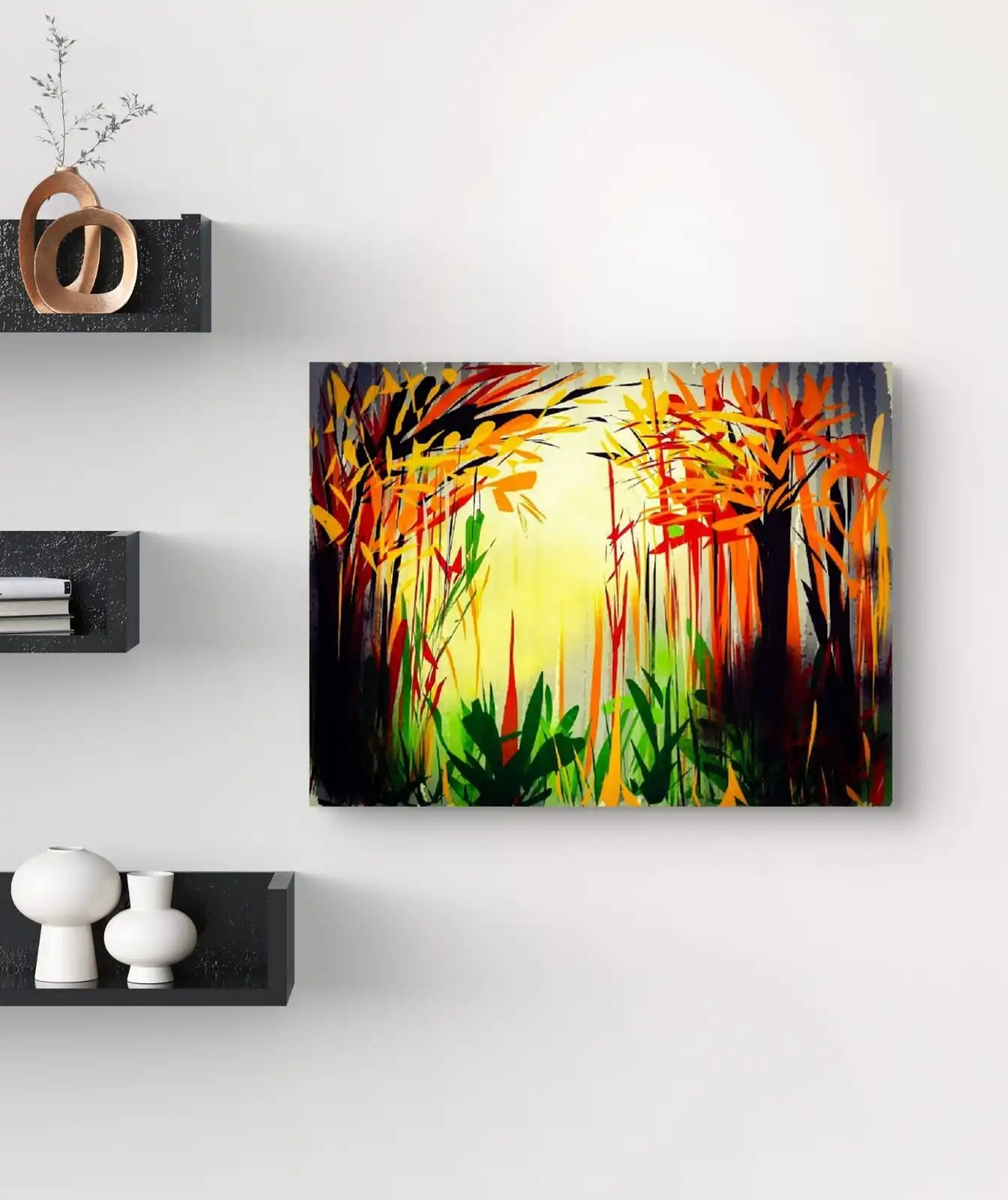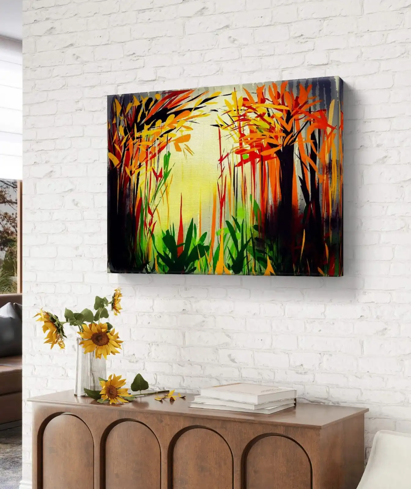 We print Sunrise in Forest on premium cotton canvas for rich texture and long-lasting quality. You can choose a classical frame, a gallery frame, or an unframed option. Each choice suits a different style of home or office décor. This artwork fits well in living rooms, bedrooms, and workspaces. It adds calm energy and a natural touch to your space.