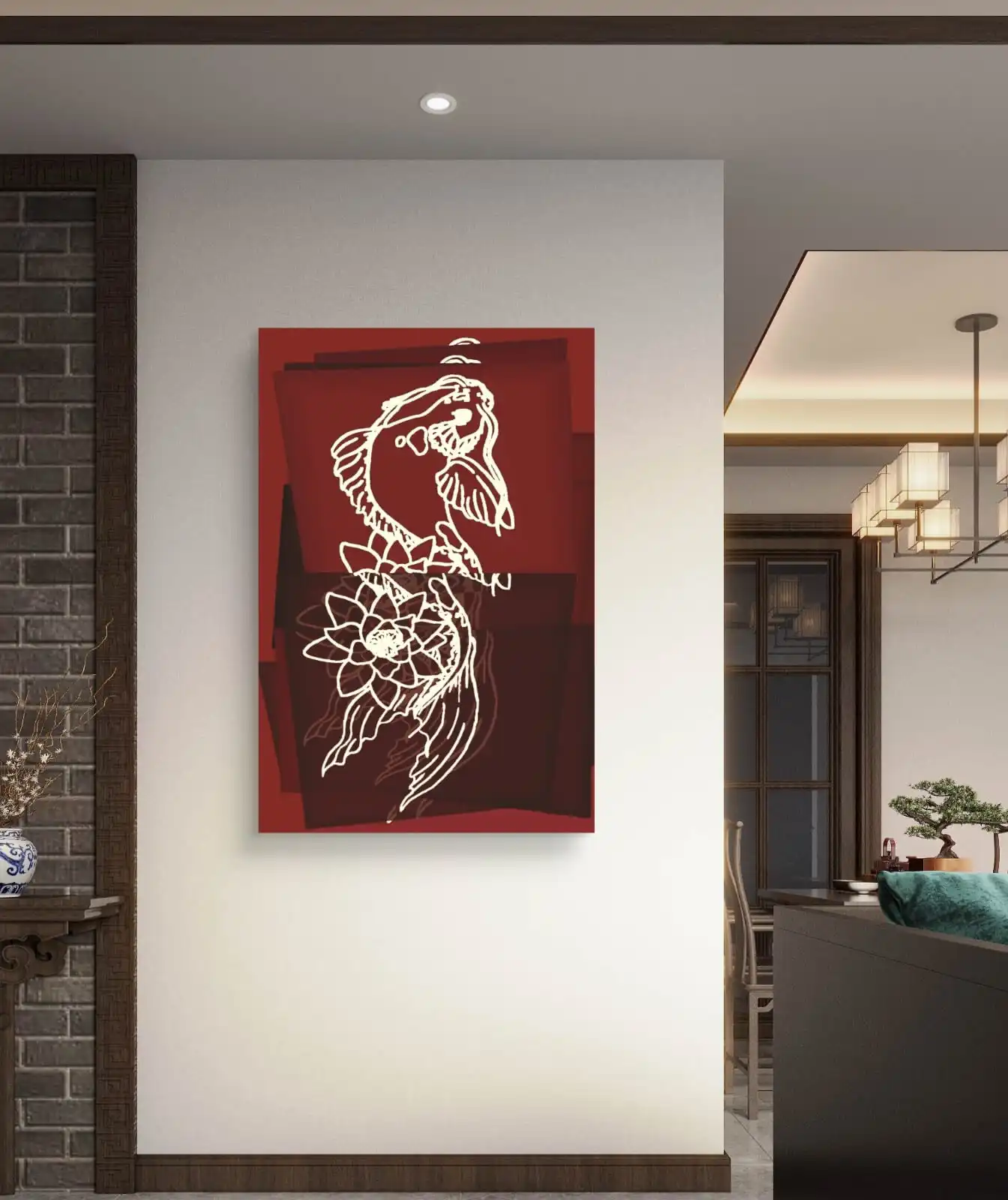 Zen Koi Pop Art works beautifully in living rooms, offices, cafes, or creative studios. It adds color and character without overwhelming the space. The clean lines and bold tones make it a strong focal point.